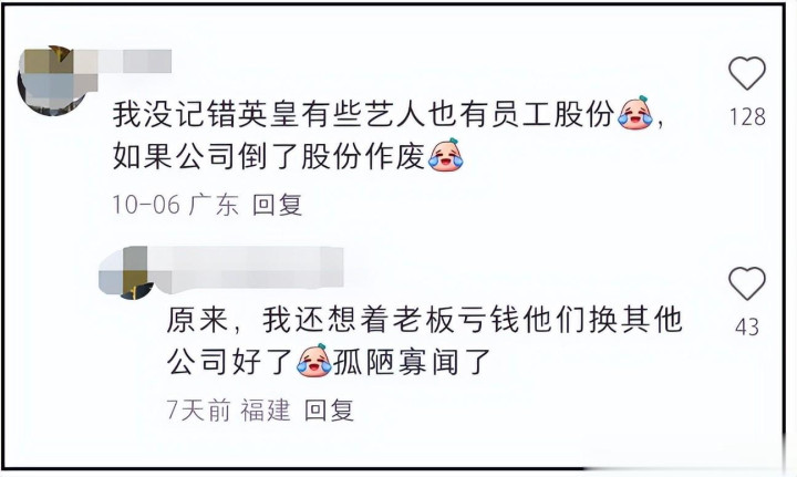 老板杨受成和员工的关系很好,甚至有传闻称,公司里的资深艺人绝大部分都有英皇的股份。如今公司负债一百多亿,如果倒闭了,那么这些股份也就全部作废,可想而知损失有多少。