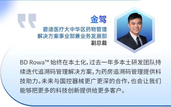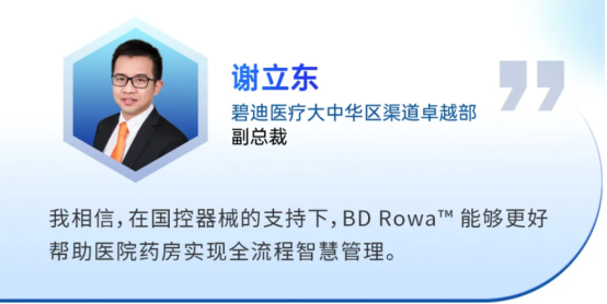 本次签约是碧迪医疗深化本土战略的又一里程碑,当卓越领航未来健康的主题遇上开放合作的时代浪潮,当全球领先的技术实力对接中国市场的蓬勃需求,碧迪将与所有伙伴一道,让创新技术加速落地,让优质服务触手可及,让BD Rowa™ 持续助力中国智慧药房建设!