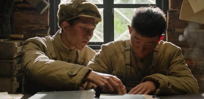 片中有一个很动人的细节,作为四川乡村的青年,主动报名入伍的黄继光,一开始曾努力练好字想给母亲写封家书,那每一笔,都是思念。