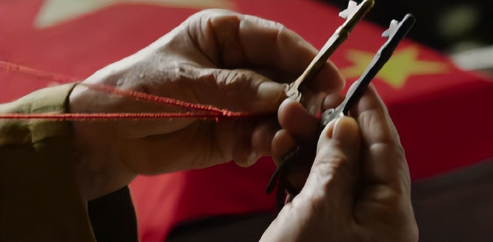 第二个段落:老年李晓(真实志愿军老兵饰演)握在手中的钥匙。