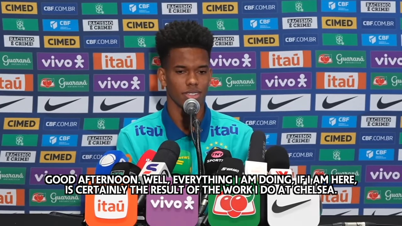 我能有今天的成就,能站在这里,一切都离不开我在切尔西的努力和付出。所以我真的很开心,能感受到大家的喜爱,也很开心能够代表巴西国家队出战。这对我来说是一种荣誉。我会继续在切尔西刻苦训练,保持高水平的表现,争取每次都有机会入选国家队。