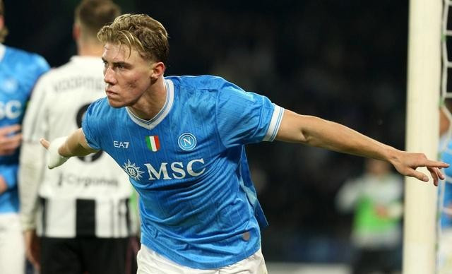 那不勒斯能赢,也靠一个厉害人物,叫霍伊伦。这小伙子是从曼联那边过来的,以前不怎么进球,来了意大利这边,好像突然就知道怎么踢球了。